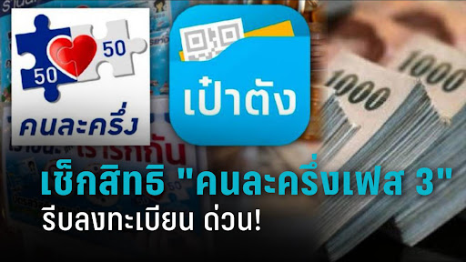 คนละครึ่งเฟส 3 ลงทะเบียนพร้อมกัน 14 มิถุนายน 64 เวลา 6 โมงเช้า ทั้งคนเก่าคนใหม่ 31 ล้านคน ผ่านแอพเป๋าตัง หรือ เว็บไซต์ คนละครึ่ง.com. มาตรการ คนละครึ่งเฟส 3 จะให้เงินช่วยเหลือในการใช้จ่ายคนละครึ่ง คนละ 3,000 บาท โควต้า 31 ล้านคน ใช้จ่ายวันละไม่เกิน 150 บาท คิดเป็นวงเงินงบประมาณ. คนละครึ่งเฟส 3 กลับมาอีกครั้งในรูปแบบเดิม จ่ายเอง 50% รัฐช่วยจ่าย 50% รอบนี้เปิดลงทะเบียนอีกเช่นเคย แต่ผู้ที่เคยได้รับแล้วไม่ต้องลงทะเบียนซ้ำ! คนละครึ่งเฟส 3 จ่อแจกสิทธิเพิ่ม ผู้เคยใช้สิทธิไม่ต้องลงทะเบียนใหม่แค่ยืนยันตัวตนให้ระบบเชื่อมต่อก่อนใช้งานคาดคิกออฟได้หลังเดือน พ.ค. คนละครึ่งเฟส3 เช็กสิทธิลงทะเบียนรายเก่าและรายใหม่ รับเงินเยียวยาคนละ 3,000 บาทต้องทำอย่างไรตรวจสอบครบจบที่นี่ เปิดลงทะเบียนคนละครึ่งเฟส 3 เงื่อนไข หลักเกณฑ์ รับ 3,000 ทุกคนต้องกรอก ข้อมูล 3 ส่วน เพิ่มอาชีพ รายได้ : ลงทะเบียนคนละครึ่งเฟส 3 เพิ่ม 16 ล้านสิทธิ์ ใครได้อดร่วม ยิ่งใช้ยิ่งได้. นี้nbspผู้ที่เคยรับสิทธิเฟส 1 และ 2 ไปแล้ว เพียงกดยืนยันรับสิทธิในแอปพลิเคชันเป๋าตัง คนละครึ่งเฟส 3 คนเก่าที่ได้รับสิทธิ์คนละครึ่งเฟส 1 เฟส 2 ก็ต้องลงทะเบียนใหม่ พรุ่งนี้ 14 มิ.ย. รวมช่องทางและวิธี ลงทะเบียนคนละครึ่งเฟส3 ทั้งสำหรับคนเก่าที่เคยได้รับสิทธิ คนละครึ่ง เฟส1 และ คนละครึ่งเฟส2 และคนใหม่ที่ยังไม่เคยได้รับ. คนละครึ่งเฟส3 คนเก่าเฟส 1 และเฟส 2 ต้องลงทะเบียนสมัครใหม่ ทางเว็บไซต์ www.คนละครึ่ง.com หรือแอปฯเป๋าตัง ข่าววันนี้ คนละครึ่ง เฟส 3 เตรียมเปิดลงทะเบียนเพิ่ม 16 ล้านสิทธิ รับเงินเยียวยา 3,000 บาท ขณะที่ผู้ที่เคยได้รับสิทธิรายเก่า เฟส 1 และ 2 รับสิทธิอัตโนมัติ ไม่. กรณี ลงทะเบียนคนละครึ่งเฟส 3 นางสาวกุลยา ตันติเตมิท.