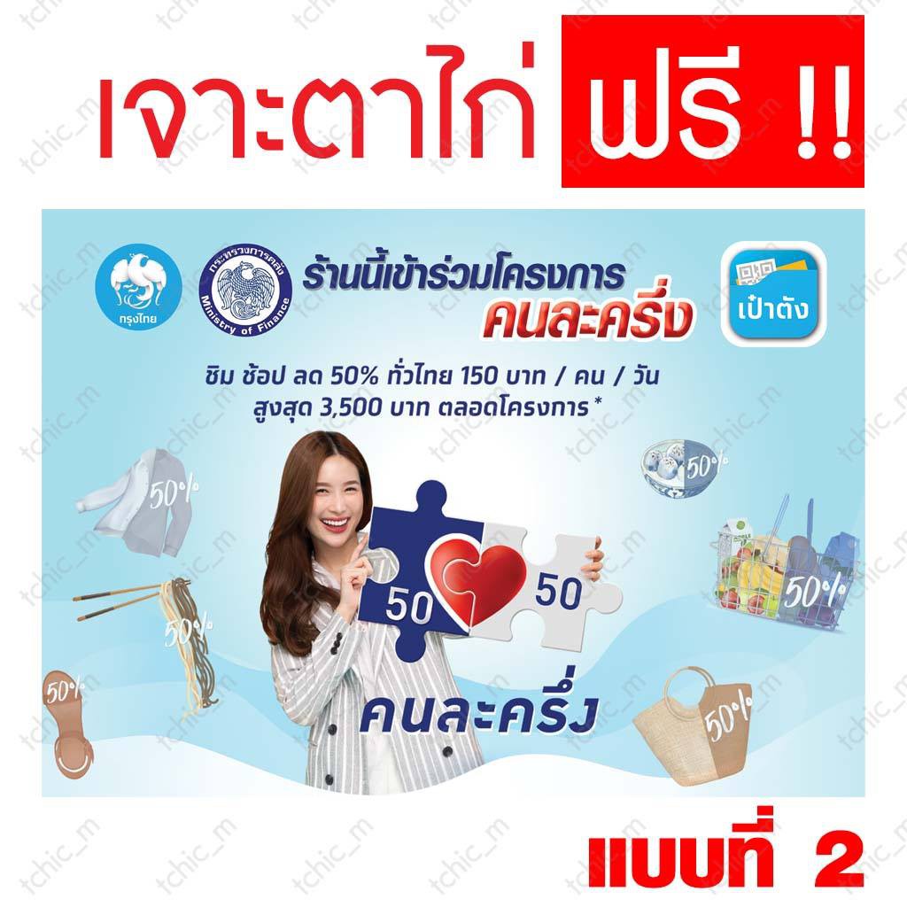 ฯลฯ ซึ่งแต่ละร้านที่เข้าร่วมโครงการ ส่วนใหญ่จะมีการติดป้ายโครงการ คนละครึ่ง ให้ลูกค้า. ป้ายไวนิลคุณภาพ หนาอย่างดี #สำหรับร้านค้าที่เข้าร่วมโครงการคนละครึ่ง ด้านหลังพื้นสีดำ เจาะรู ตอกตาไก่ให้เรียบร้อย พร้อมใช้งานนำไปแขวนติด. มีคำตอบ คนละครึ่งเฟส 3 ลงทะเบียนวันไหน ใครได้บ้าง คนละครึ่งใช้ได้ถึงวันไหน. พบกันบรรยากาศสไตล์ใหม่ๆที่ร้านชาววังนะครับ เข้าร่วมทั้งเราเที่ยวด้วยกัน และโครงการคนละครึ่ง ผัดผักลอยน้ำ หม่าล่า บัวลอยไข่หวานลอยน้ำ. ขนาด 40×60 cm ราคา 180 บาท (รวมจัดแล้ว) คนละครึ่ง 10 ร้านบุฟเฟ่ต์ ในกรุงเทพ จ่ายครึ่งเดียว อิ่มได้ไม่อั้น ! ปลัดกระทรวงการคลัง ชี้แจงกรณีหากลงทะเบียน เราชนะ แล้ว จะไม่มีรับสิทธิทับซ้อนกับ คนละครึ่ง โดยจะถูกตัดสิทธิออก. ตามมาเอาใจคนย่านลาดกระบังกันบ้างกับ 10 ร้านอาหาร ลาดกระบัง กรุงเทพ อร่อยฟินพร้อมส่วนลด 150 บาท (ต่อวัน) โครงการ คนละครึ่ง โครงการที่รัฐบาล จัด. สำหรับผู้ประกอบการร้านค้าลงทะเบียนเข้าร่วมโครงการคนละครึ่ง ระยะที่ 3 หรือโครงการยิ่งใช้ยิ่งได้ เริ่มตั้งแต่วันที่ 14. ป้ายโครงการ คนละครึ่ง ชิม ชอป ทั่วไทย รัฐออกให้ 50% ร้านค้าที่เข้าร่วมโครงการ สนใจสั่งได้เลยจร้า เลือกขนาด แก้ไขแบบ ใส่โลโก้ร้านค้าได้ตาม. ส่อง 5 ขั้นตอนลงทะเบียน ร้านค้าเราชนะ ผ่านเว็บไซต์ www.เราชนะ.com จะต้องทำอย่างไรบ้าง? โชว์ 7 ขั้นตอน ลงทะเบียนคนละครึ่ง สำหรับร้านค้าหาบเร่แผงลอย และร้านค้าทั่วไปที่อยากเข้าร่วมโครงการ รับเงินจาก 10 ล้าน. How to เข้าร่วมเป็นร้านค้าโครงการ เราชนะ สามารถลงทะเบียนที่ www.คนละครึ่ง.com หรือติดต่อสาขาธนาคารกรุงไทย ได้ตั้งแต่วันนี้จนถึง วันที่ 31 มี.ค.